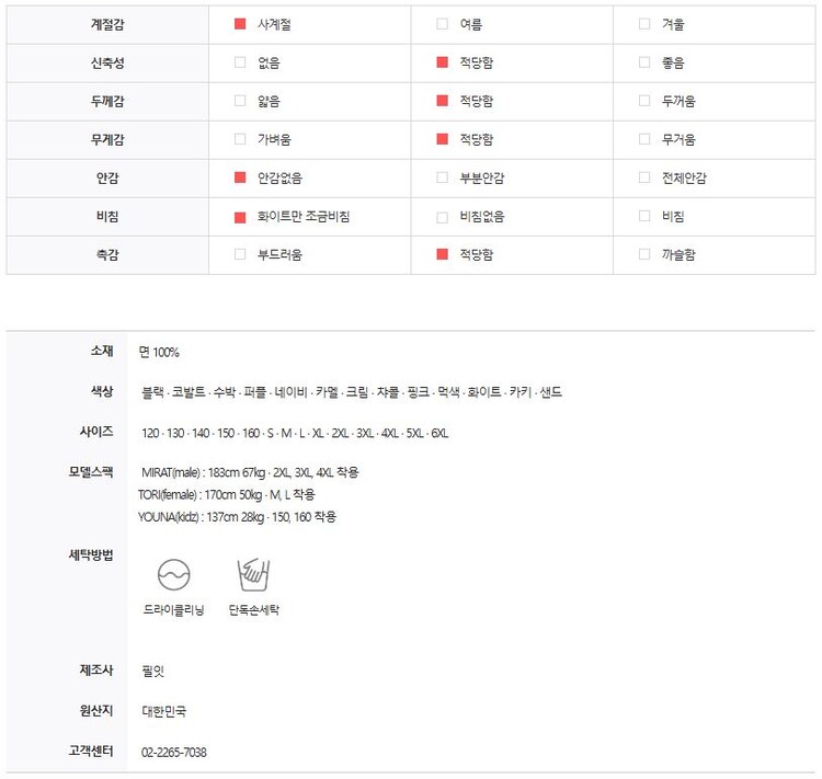 가볍게 착용감이 좋은 원단으로 봄·가을에 단독으로, 겨울에는 이너로 활용하시기 좋은