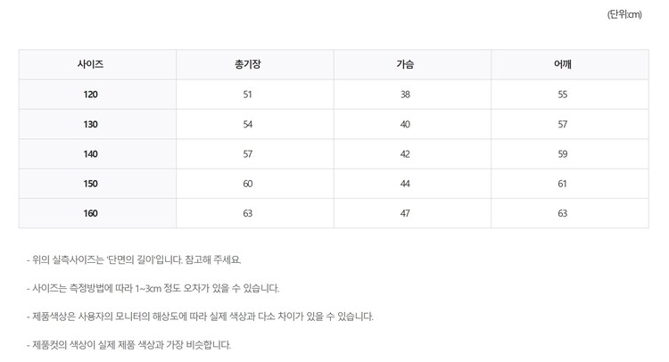 120~160 + 아동에서 주니어 중학생 빅사이즈