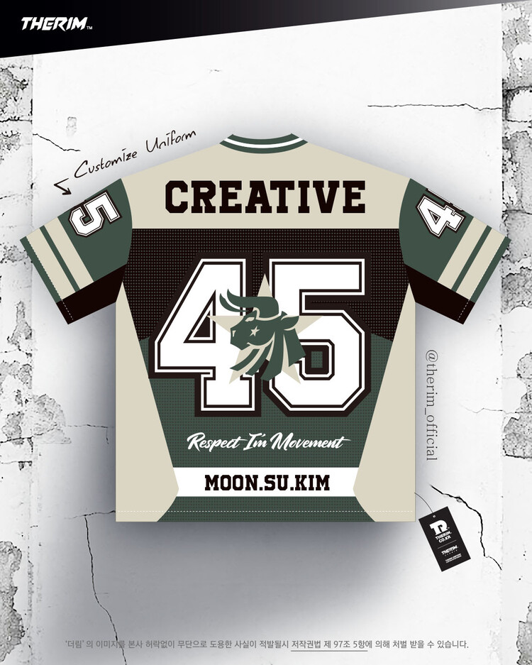 *맞춤 제작 유니폼으로 팀에 맞게 색상, 패턴, 팀명, 등번호 등 재구성됩니다.