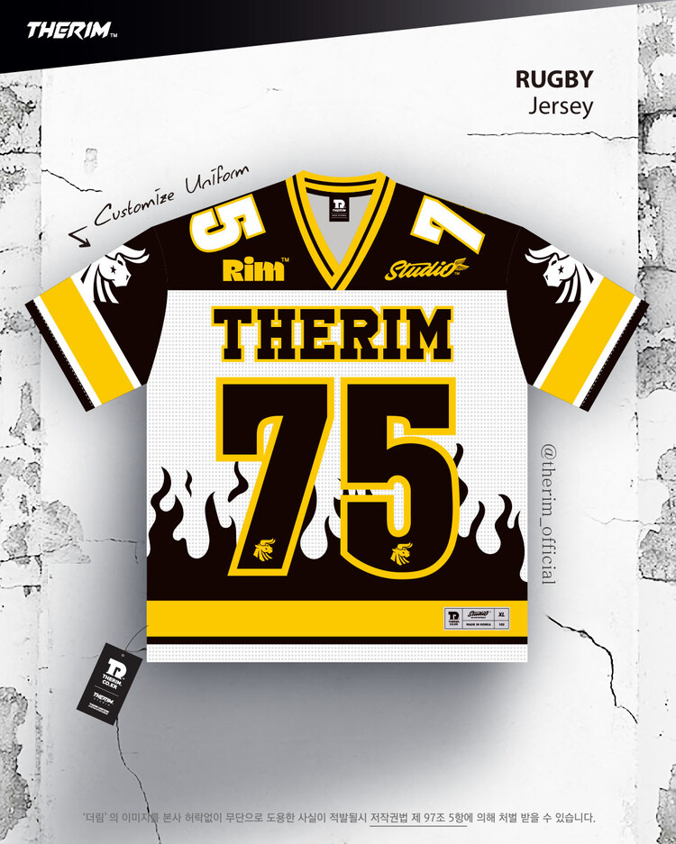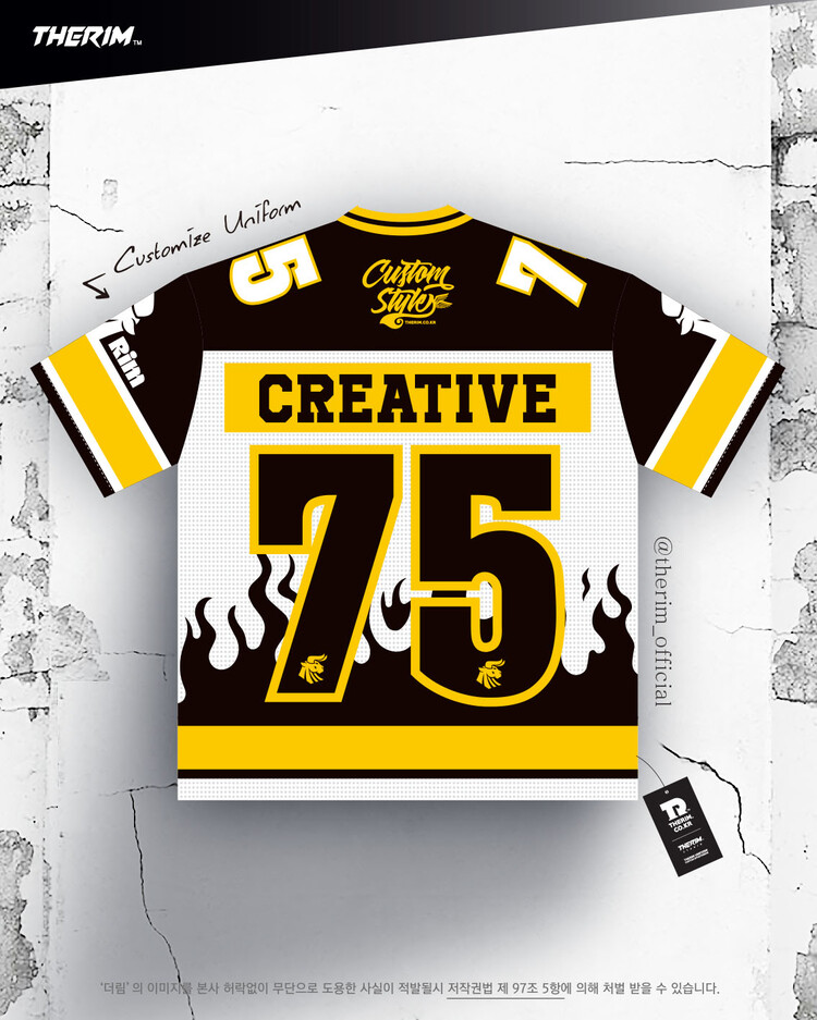 *맞춤 제작 유니폼으로 팀에 맞게 색상, 패턴, 팀명, 등번호 등 재구성됩니다.