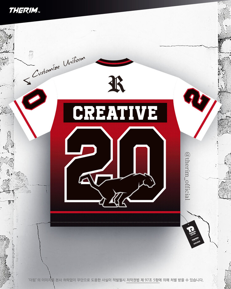 *맞춤 제작 유니폼으로 팀에 맞게 색상, 패턴, 팀명, 등번호 등 재구성됩니다.