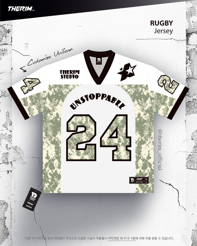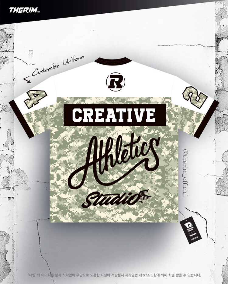 *맞춤 제작 유니폼으로 팀에 맞게 색상, 패턴, 팀명, 등번호 등 재구성됩니다.