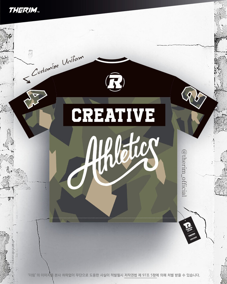 *맞춤 제작 유니폼으로 팀에 맞게 색상, 패턴, 팀명, 등번호 등 재구성됩니다.