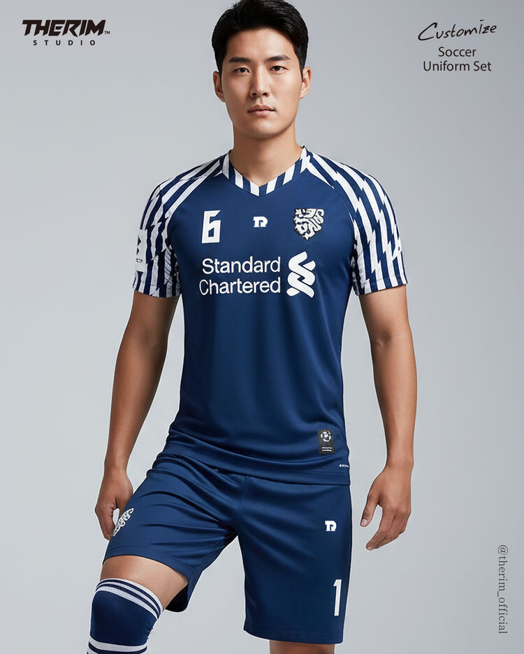 *맞춤 제작 유니폼으로 팀에 맞게 색상, 패턴, 팀명, 등번호 등 재구성됩니다. 홈페이지 하단 "카톡문의"를 통해 원하시는 유니폼 시안을 받아보세요!
