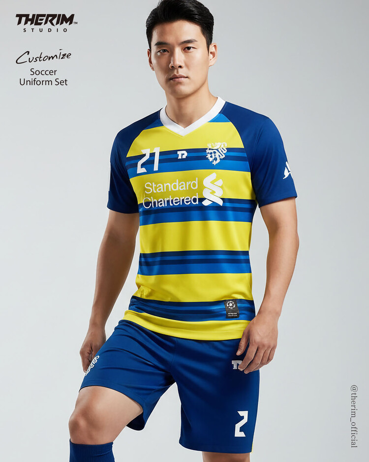 *맞춤 제작 유니폼으로 팀에 맞게 색상, 패턴, 팀명, 등번호 등 재구성됩니다. 홈페이지 하단 "카톡문의"를 통해 원하시는 유니폼 시안을 받아보세요!